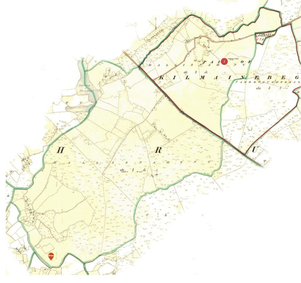 Ballisnahyny West is one of the tds. forming the detached portion of the parish of Kilmainebeg.